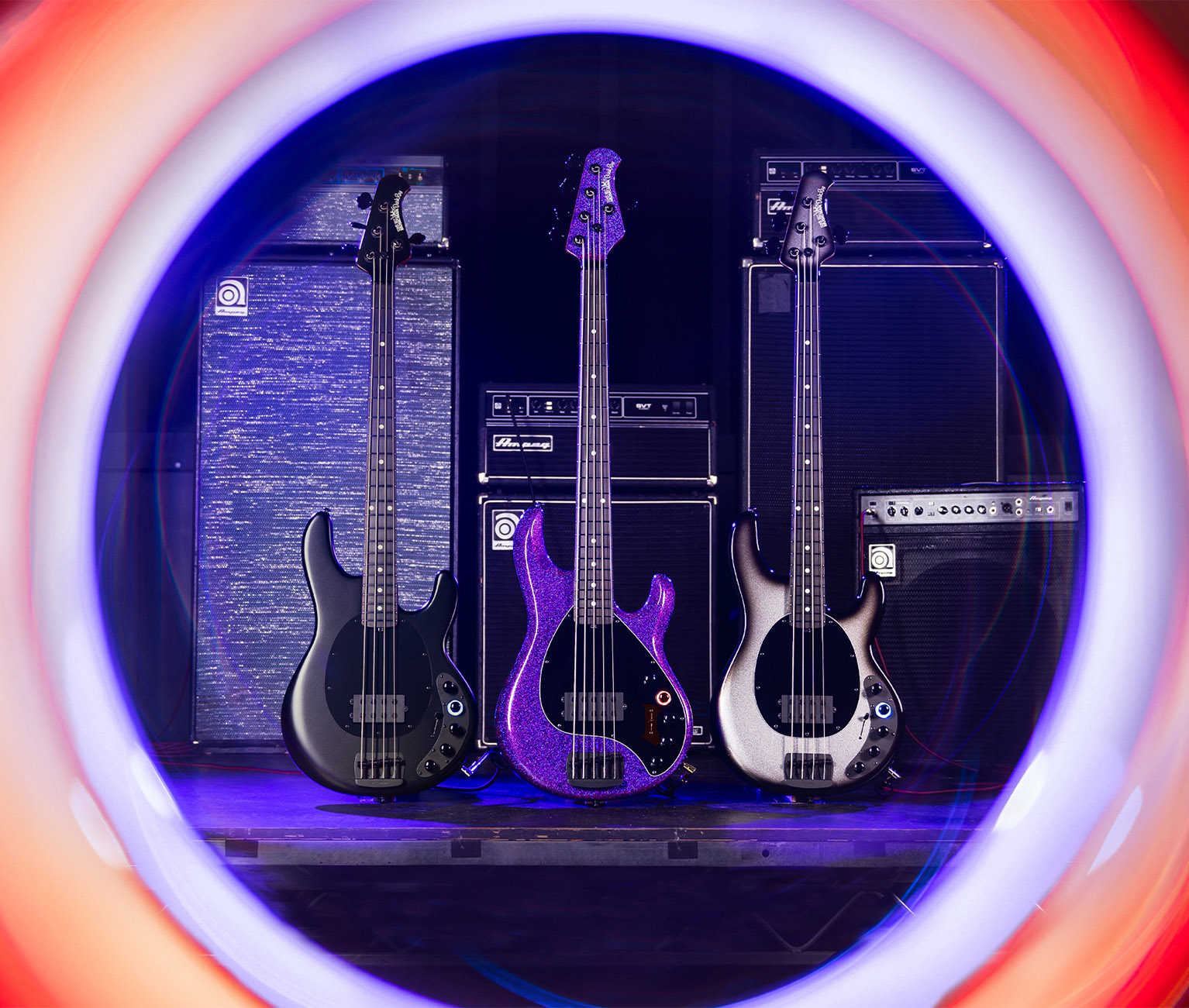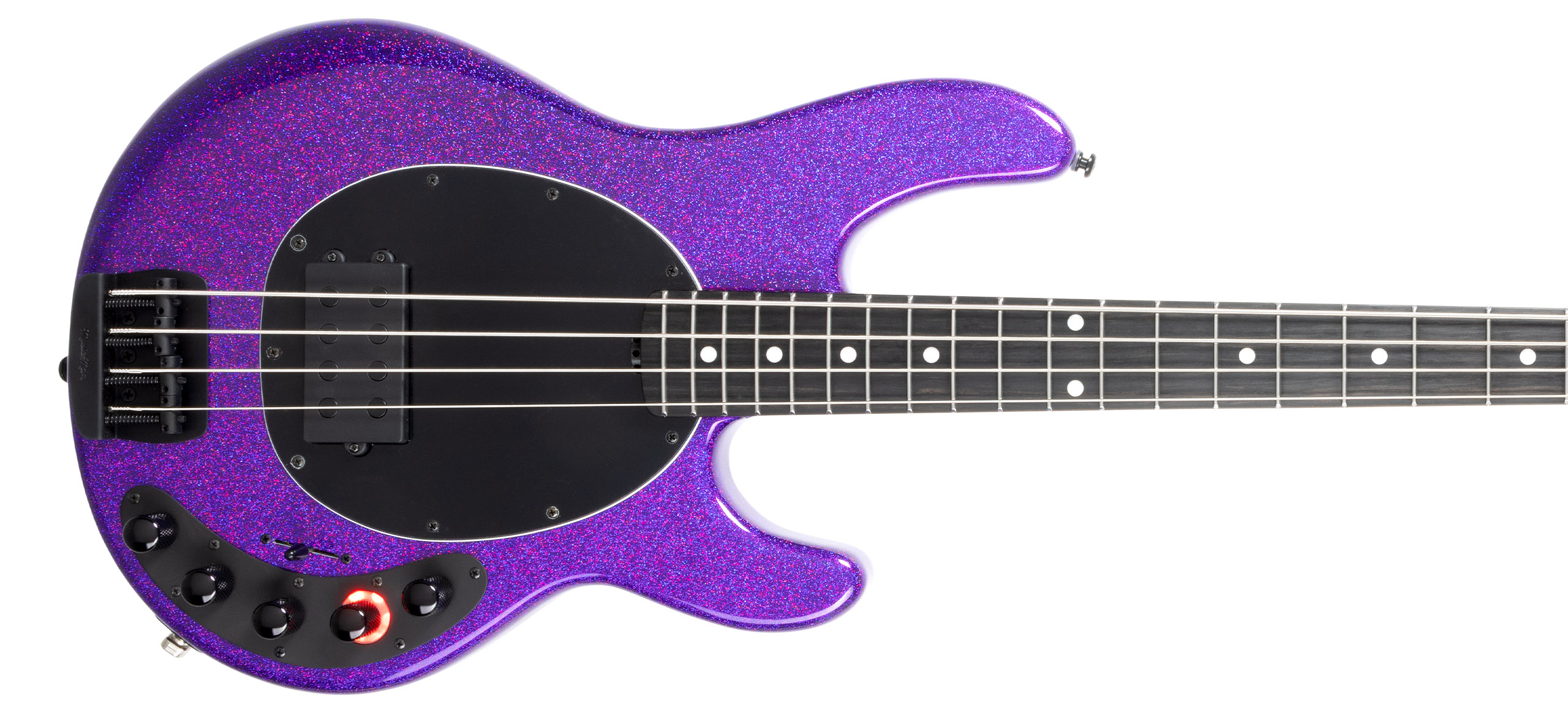 | Bridge | Vintage Music Man® top loaded Black plated, steel bridge plate with vintage Black plated steel saddles | |