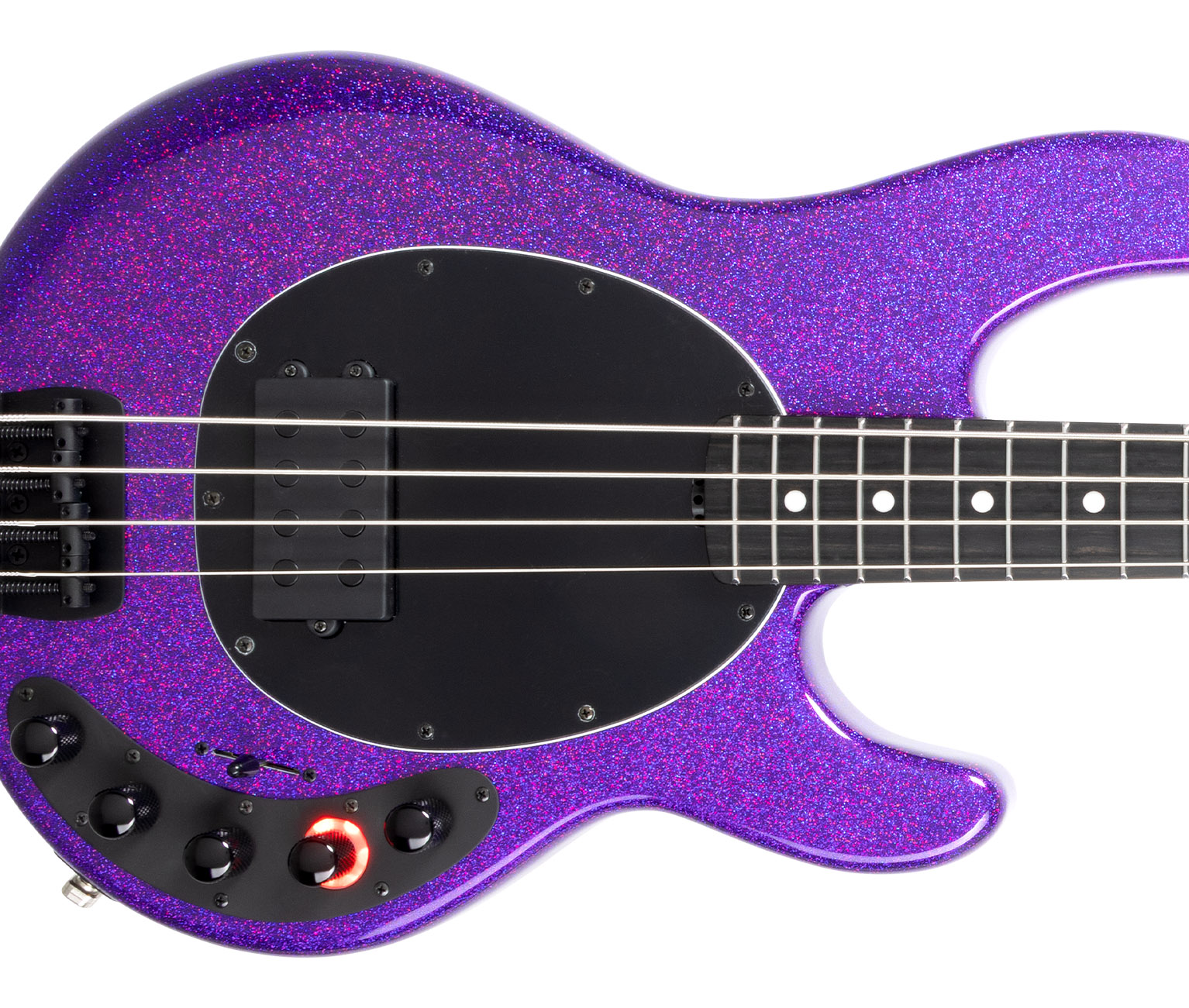 The DarkRay bass is every bit a Stingray Special with neodymium humbucking pickup, roasted maple neck, comfort contoured body, 22 stainless steel frets, all black hardware, and the familiar 3+1 headstock configuration.