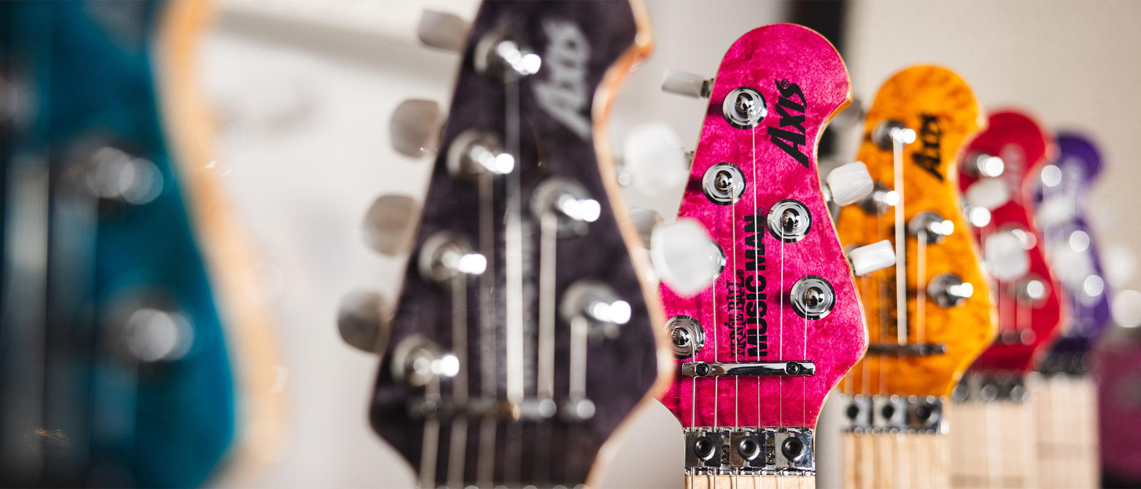 Proprietary humbucking pickups are custom designed for the Axis guitar.
