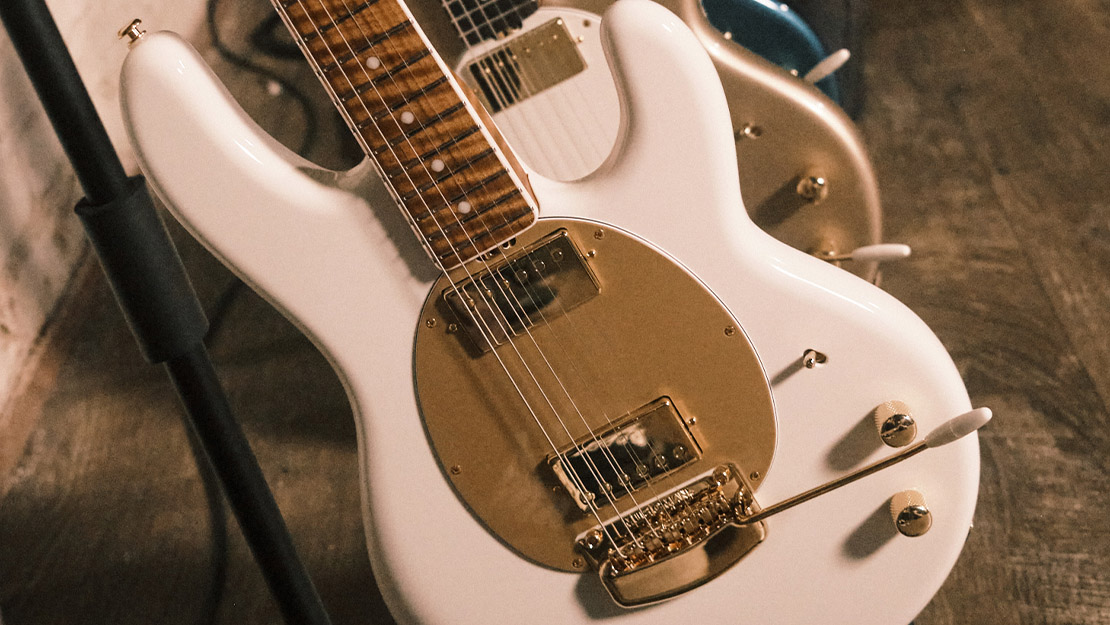 The elegant appearance of the StingRay II Deluxe draws inspiration from the iconic StingRay Bass, characterized by an enlarged headstock and a distinctive oval-shaped pickguard set upon a compact double cutaway body. A roasted maple neck with binding, gold hardware, and a custom artist series neck plate significantly elevate the guitar's artistic appeal.